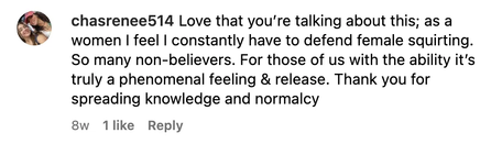 "FINALLY SQUIRTED FOR THE FIRST TIME IN MY LIFE. I thought it was impossible until I watched this course. My boyfriend and I tried a few times and it worked perfectly! Very excited and thank you so much!!"