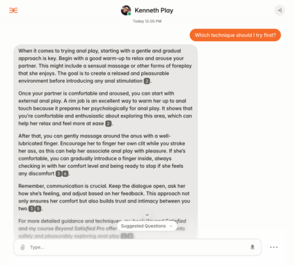 "I'm a single, straight woman, and the Beyond Satisfied Pro course is the best present I ever gave myself. Having partnered orgasms has always been difficult for me, but this course has transformed my dating life. Not only has it given me ideas for new things to try with my partners, but Kenneth Play has devised the easiest way to teach those tricks to another person..."